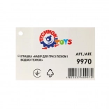 Întregul set este ambalat într-o plasă albă pentru transport ușor și uscare rapidă după joaca lângă apă.