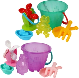 - Găletușă, moară, lopățică, greblă, forme, bărcuță (poate varia în funcție de versiunea de culoare)