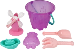 Veselul set din plastic pentru nisip și apă, cu găletușă, moară și unelte, este ideal pentru plajă, grădină și locul de joacă. Susține motricitatea fină, creativitatea și învățarea principiilor mișcării apei și nisipului. Construcție ușoară și sigură pentru mâinile mici ale copiilor, depozitare practică în plasă și multă distracție de la 1 an.