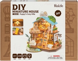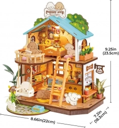 Descoperiți magia creației cu o căsuță care include un dormitor spațios, un spațiu de relaxare confortabil cu leagăn și colț de masă, și la etajul întâi un balcon. Fiecare detaliu este tăiat cu precizie, incluzând lenjerie de pat moale, o noptieră cu lampă, un laptop, o bibliotecă, un automat pentru cappuccino și flori. Datorită iluminării LED la parter și la etajul întâi, animalul dvs. de companie se simte confortabil.