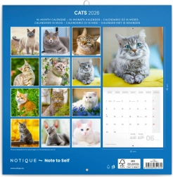 Vă prezentăm minunatul calendar de notițe pentru anul 2026, perfect pentru toți pasionații de pisici. Calendarul are un calendar în șase limbi, care oferă spațiu suficient pentru toate notițele și planurile dumneavoastră. De asemenea, permite o orientare ușoară datorită includerii fazelor lunare și sărbătorilor importante. Cu acest calendar, veți avea tot ce aveți nevoie pentru a vă organiza timpul: