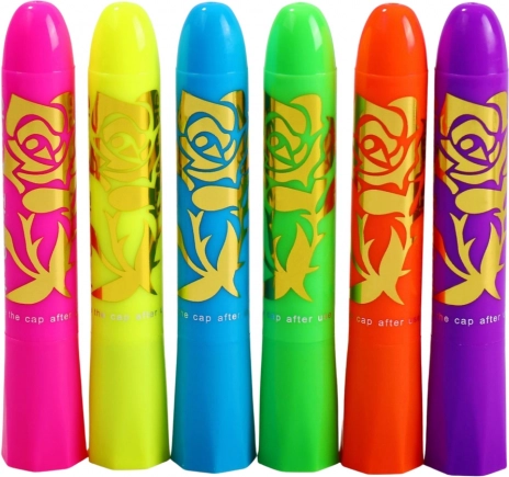 Set neon pentru pictura pe față cu 6 markere fluorescente pentru distracție creativă și utilizare sigură.