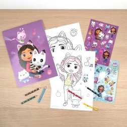Acest set creativ oferă copilului posibilitatea de a se cufunda în lumea Gabby's Dollhouse și de a-și dezvolta creativitatea. 30 de pagini de colorat cu scenele și personajele preferate stimulează imaginația copiilor. Pachetul include și șase creioane colorate și o foaie de autocolante, care le permite copiilor să adauge o notă personală creațiilor lor.