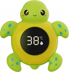 Asigurați-vă că fiecare baie a copilului dumneavoastră este sigură și confortabilă cu termometrul nostru drăguț în formă de Țestoasă. Măsoară temperatura apei și a camerei și emite un sunet distractiv care facilitează măsurarea temperaturii.