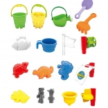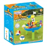 Masa este împărțită în trei secțiuni - separat pentru apă, nisip și spațiu pentru joacă. 13 accesorii suplimentare aduc și mai multă distracție! Setul este ideal pentru utilizare în casă și grădină, de exemplu la plajă sau în curte.