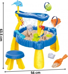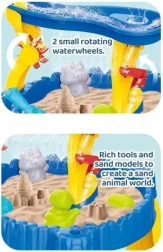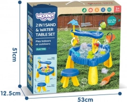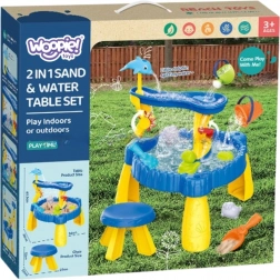 Woopie Stolek apă și nisip 2în1 oferă copiilor posibilități nelimitate de dezvoltare a motricității și creativității. Ideal pentru copii de la 3 ani, este adecvat pentru utilizare atât în interior, cât și în exterior. Structura sa ușoară și stabilă cu elemente colorate este ușor de asamblat, facilitând începutul rapid al jocului.