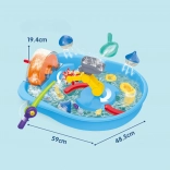 - Include 14 componente colorate diferite, cum ar fi undițe, peștișori și plase.