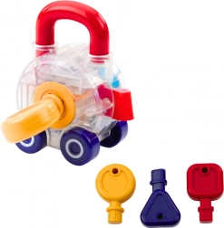 Setul educațional de mașinuțe cu chei este o jucărie excelentă pentru micii exploratori. Conținutul setului constă din trei mașinuțe de salvare - ambulanță, mașină de pompieri și mașină de poliție. Fiecare mașinuță are un lacăt special pe care copiii îl pot deschide folosind chei colorate. Această jucărie interactivă ajută la dezvoltarea gândirii logice, abilităților de coordonare și a capacităților cognitive ale copilului. Jucăria este fabricată din materiale de calitate și sigure, care asigură o durată lungă de viață. Datorită designului transparent, copiii pot vedea cum funcționează mecanismul lacătului, ceea ce este foarte captivant și educativ. Mașinuțele au roți silențioase, ceea ce permite un joc fluid și confortabil pe diferite suprafețe. Culorile și designul stimulează simțurile și susțin creativitatea. Setul este ambalat într-o cutie estetică cu fereastră, ideală ca și cadou.