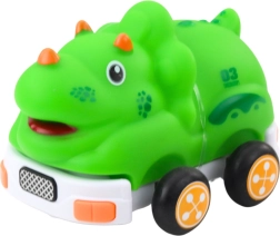 Mașinuța controlată cu oglindă în formă de dinozaur vesel este jucăria ideală pentru micii iubitori de creaturi preistorice. Mașinuța poate fi ușor controlată de la distanță, frecvența sa fiind de 27 MHz, ceea ce garantează o manevrare fluidă. Bucuria plimbării este amplificată de efectele de lumină, iar formele rotunjite cu butoane mari pe telecomandă asigură siguranță totală pentru copiii de la 18 luni.