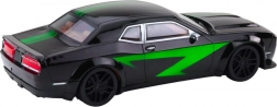 Această mașină sportivă este o alegere excelentă pentru tinerii pasionați de curse și viteză. Se remarcă prin design dinamic, profil sportiv și vopsire estetică cu accente verzi. Cu un model echipat cu tracțiune pe roțile din spate, este suficient să împingi ușor mașina și ea va porni singură înainte, imitând mișcarea reală de rulare.