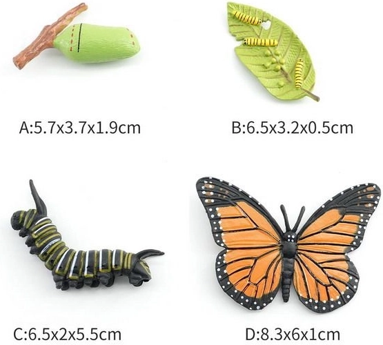 Experimentează transformarea fascinantă a fluturelui cu această figurină detaliată ce prezintă patru etape de dezvoltare: ouă, omidă, cocon și fluture. Ideală pentru colecționari sau pentru educația copiilor.