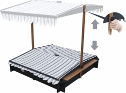 Groapa de nisip Lily de la AXI permite copiilor să se joace în siguranță și cu distracție afară datorită construcției sale robuste din lemn. Proiectată cu atenție la confort și siguranță, oferă un acoperiș din poliester rezistent la apă cu protecție UV50, care poate fi ajustat ușor și transformat într-un capac pentru groapa de nisip.