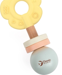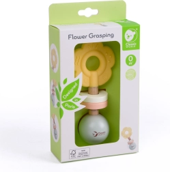 Zornăitoare drăgălașă în formă de floare, creată pentru cei mai mici copii, cu culori pastelate delicate care atrag atenția copilului. Fabricată din materiale sigure, lemn și silicon, potrivită încă de la naștere.