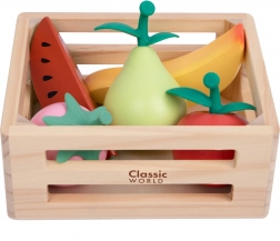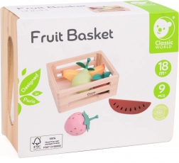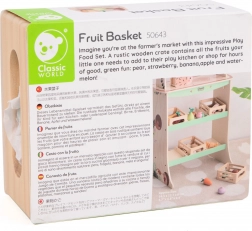Coș din lemn cu fructe de la Classic World este ideal pentru copiii care iubesc jocul creativ de-a bucătarii sau de-a magazinul. Elementele din lemn care reprezintă diferite tipuri de fructe inspiră la jocuri de rol, dezvoltă imaginația și abilitățile sociale.