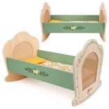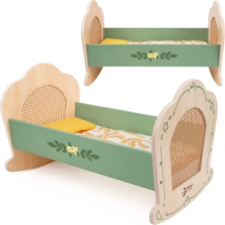 Acest leagăn captivant în nuanțe de verde îmbină farmecul atemporal al stilului vintage cu frumusețea naturală a împletiturii din ratan. Detalii clasice și culorile subtile fac din acest leagăn un adaos perfect pentru orice joc de copii, fie că este vorba de îngrijirea păpușilor sau a ursuleților de pluș. Decorațiunile delicate conferă leagănului un caracter unic iar setul de lenjerie moale garantează păpușii un somn confortabil.