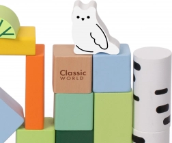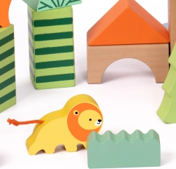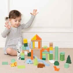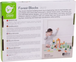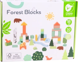 Acest set de cuburi din lemn conține 50 de piese colorate de forme diferite, care ilustrează copaci, animale și peisaje din pădure. Calitatea înaltă a prelucrării asigură durabilitate și siguranță pe termen lung în timpul jocurilor. Cuburile sunt ecologice și nu conțin substanțe nocive.