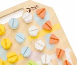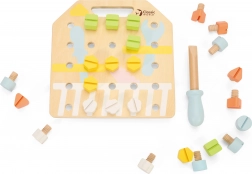 Copiii pot crea diferite forme folosind șuruburile pe placa din lemn, ceea ce este foarte distractiv și totodată benefic pentru creșterea lor. Îmbunătățește coordonarea, concentrarea și forța încheieturilor și a mâinilor. Cardurile cu modele oferă diverse provocări pe care copiii le pot încerca, și împreună cu părinții pot încerca să construiască modele din memorie. Această activitate contribuie și la recunoașterea culorilor și a formelor.