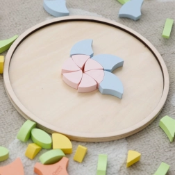 Această jucărie din lemn permite copiilor să creeze un număr nelimitat de modele, fie după un model prestabilit, fie după propria fantezie. Este ideală pentru joaca individuală cât și pentru creații comune cu prietenii sau adulții.
