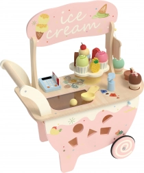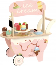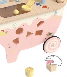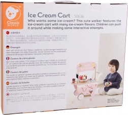 Vă prezentăm ice cream cart din lemn 3în1 de la Classic World, ideală pentru copiii de la 3 ani în sus. Această jucărie multifuncțională servește nu numai ca magazin de înghețată, ci și ca sortator, labirint și tablă de desenat. Este fabricată din materiale durabile și sigure, cu culori pastelate și imprimeuri decorative care vor captiva orice mic comerciant. Cu o mulțime de accesorii led, inclusiv diferite arome, toppinguri și cornete, copiii se pot scufunda complet în jocul de-a magazinul sau înghețata.