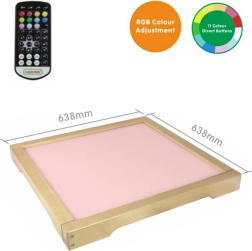 Panou Luminat LED de la MASTERKIDZ este o cutie solidă din lemn, cu iluminare LED, care se poate personaliza cu ajutorul unei telecomenzi. Utilizatorul poate seta panoul pe una dintre cele 11 culori prestabilite sau poate schimba manual lumina combinând culorile de bază: roșu, verde și albastru.