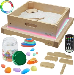 Panou LED de la Masterkidz este o cutie din lemn de calitate cu iluminare LED, care își schimbă culorile în funcție de setările dumneavoastră prin telecomandă. Susține creativitatea și activitățile educative, ideal pentru explorarea luminii și a culorii.
