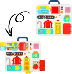 Tabla de manipulare interactivă Montessori oferă copiilor posibilitatea de a-și dezvolta toate simțurile și abilitățile. Datorită efectelor sonore și luminoase realiste, atrage copiii în jocul creativ.