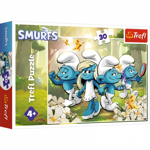 Puzzle pentru copii cu motivul Ștrumfii – aventuri oferă 30 de piese solide pentru o asamblare distractivă. Imaginea finală are dimensiunile de 27 × 20 cm și este ideală pentru copii de la 4 ani.