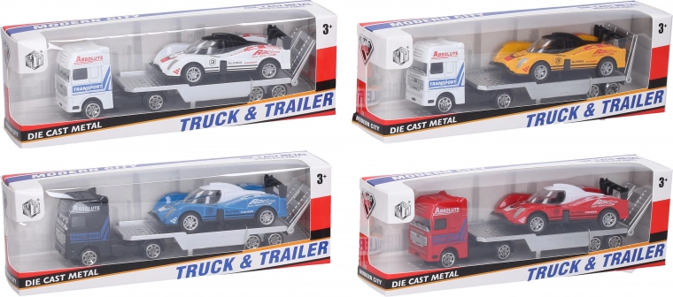 Camion de transport cu mașină de curse este o alegere excelentă pentru iubitorii de curse auto. Această mașinuță metalică cu roți libere și dimensiuni compacte va anima orice joc de copii.