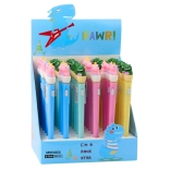 Partea superioară a pixului este decorată cu o figurină din cauciuc în formă de dinozaur, care servește ca element decorativ și adaugă farmec întregului. Datorită capacului, vârful stiloului este bine protejat împotriva uscării, iar un buton încorporat activează efectul de iluminare LED, care se aprinde la fiecare apăsare.