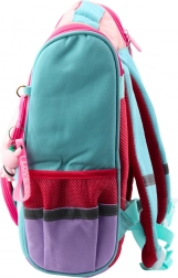 Rucsacul are un compartiment principal mare care oferă spațiu suficient pentru cărți, caiete și alte rechizite școlare. Pe partea din față se află o poșetă detașabilă cu pasăre, care poate fi folosită ca husă separată sau decorațiune. La fermoar este atașat, de asemenea, un breloc cu un iepuraș drăguț.