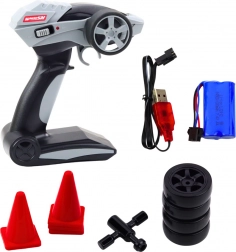 Setul include și un set de anvelope de rezervă, o cheie pentru înlocuirea lor și conuri pentru antrenament de drift. Acest model dezvoltă abilitățile motorii, reflexele și pasiunea pentru tehnologie și conducerea sportivă.