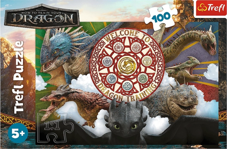 Puzzle pentru copii de la brandul Trefl cu motiv din filmul How to Train Your Dragon, conține 100 de piese și, după asamblare, creează o imagine de 410 × 275 mm. Fabricat din materiale calitative și ecologice, hârtia calandrată specială reduce reflexiile și ușurează asamblarea.