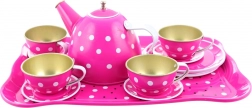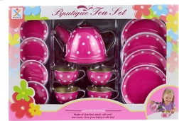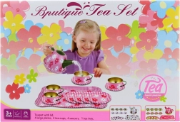 - 1x ceainic, 4x cești cu farfurioare, 4x farfurii, 1x tavă