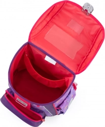 Rucsacul constă dintr-un compartiment spațios care poate conține ușor toate accesoriile școlare. Fundul rucsacului este din material solid pentru protejarea conținutului. Închiderea se face cu o cataramă metalică de siguranță dotată cu reflector. Buzunarul din față este destinat gustării și nu lipsesc elementele reflectorizante care asigură vizibilitate.