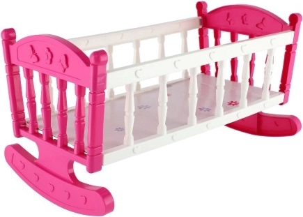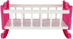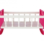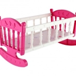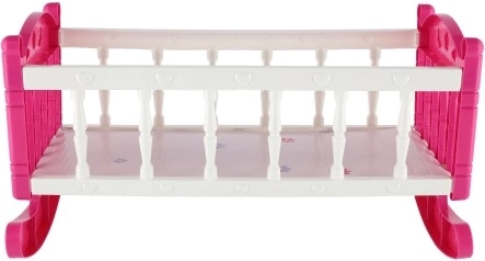 Leagănul roz și alb, cu decorațiuni fine, este realizat din plastic rezistent, permițând legănarea și adormirea păpușii. Ideal pentru dezvoltarea imaginației în timpul jocului.
