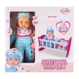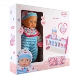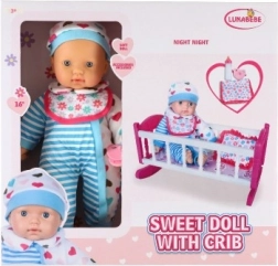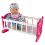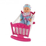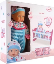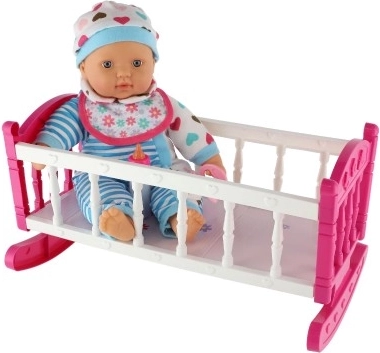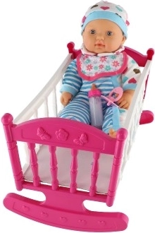 De această dată vă aducem o păpușă cu leagăn unică, care va fi un plus grozav în lumea de joacă a fiecărui copil. Corpul moale al păpușii permite o manipulare și transport ușoare, adăugând realism mișcărilor în timpul jocului. Leagănul roz cu dungi albe și motiv cu inimioare este ideal pentru adormirea păpușii, în timp ce accesoriile precum biberonul și suzeta creează o experiență realistă de îngrijire a bebelușului.