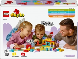 Acest joc și set de construit 2 în 1 LEGO DUPLO aduce copiilor învățare distractivă prin joacă. Construiți împreună un castel colorat, rotiți indicatorul și deplasați figurinele cu animale pe planșa de joc. În funcție de culoarea pe care vă opriți, adăugați piesa corespunzătoare la castel – spiritul de echipă câștigă atunci când toate personajele ajung la castel!