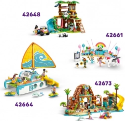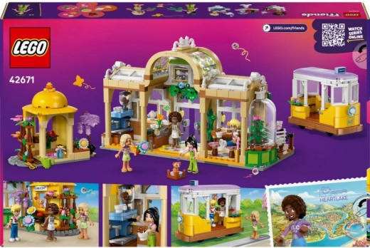 Acest set fermecător din orașul Heartlake invită la descoperirea florilor și a prieteniilor. Copiii pot servi clienții în florărie, pot pregăti bunătăți în cafenea cu bucătărie și pot răspândi buna dispoziție cu tramvaiul stilat. Patru personaje (Aliya, Esme, Olly și Nova) și o figurină de pisică lărgesc posibilitățile de joc și susțin abilitățile sociale și empatia.