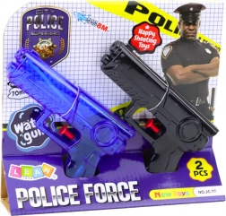 Acest set conține două pistoale de apă, ideale pentru jocuri active și distractive în aer liber. Copiii pot pretinde că sunt polițiști și se pot juca în bătălii de apă în grădină, pe plajă sau pe terenul de joacă. Fabricat din plastic de înaltă calitate, care este rezistent la deteriorări mecanice și sigur în contact cu apa.