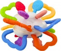 Această jucărie este compusă din două părți centrale mobile, rotative, pe care copilul le poate mișca, ceea ce ajută la exercițiul de prindere și dezvoltarea coordonării mână-ochi. În plus, întreaga jucărie este înconjurată de mânere colorate, flexibile, cu forme și texturi diferite, fabricate dintr-un material sigur, moale, care amintește de cauciuc. Aceste elemente sunt ideale pentru mușcare, oferind ușurare în timpul erupției dentare.