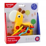 Această girafă este echipată cu șnururi colorate cu texturi variate, pe care copiii le pot întinde prin orificii, exersându-și astfel precizia și îndemânarea degetelor. Conține, de asemenea, elemente rotative și care clic-clăcăie, făcând jucăria și mai distractivă și captivantă.