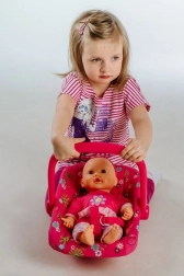 Creat pentru ore nesfârșite de distracție, acest marsupiu pentru păpuși combină practicitatea și siguranța. Copiii pot transporta confortabil păpușile preferate datorită mânerului din plastic solid și scaunului capitonat și confortabil.