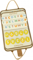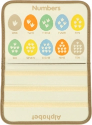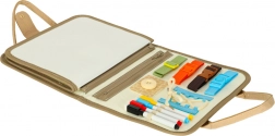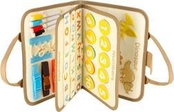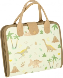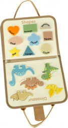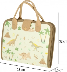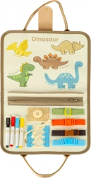 Geanta conține o tablă de șters și componente educative care le permit copiilor să-și dezvolte cunoștințele prin joacă. Există, de asemenea, figurine din fetru cu dinozauri pentru joacă creativă.