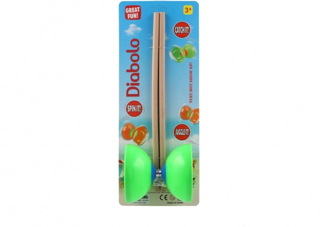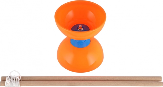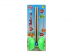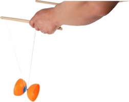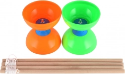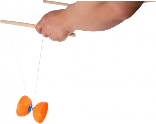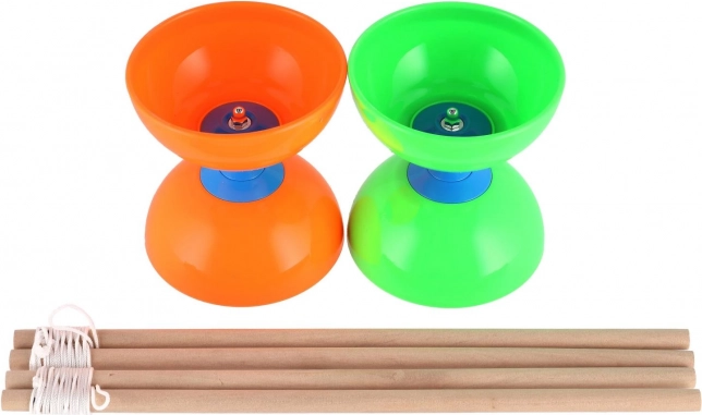 Cupele solide din plastic rezistă la impacturi, iar bățele din lemn oferă o priză sigură și un control natural al diaboloului.