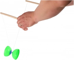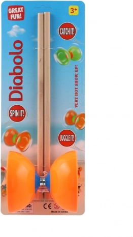 Diaboloul mare, cu cupe robuste din plastic și bățele din lemn, aduce multă distracție și antrenament al motricității. Datorită cupelor late și axului stabil, diaboloul este foarte stabil, menține bine viteza și iartă greșelile – ideal pentru învățare și dezvoltarea trucurilor.
