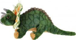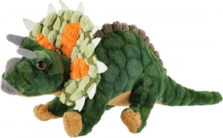 Acest triceratops de pluș în tonuri de verde, cu coarne delicate și guler, îi va fermeca pe toți copiii. Datorită umpluturii moi și suprafeței plăcute, este făcut pentru îmbrățișat, în timp ce detaliile contrastante și materialul texturat susțin percepția senzorială și imaginația.