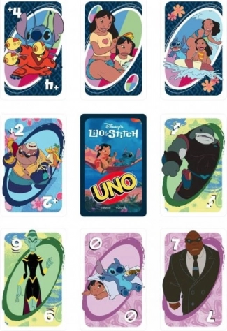 UNO Disney Lilo & Stitch aduce tot ceea ce iubești la UNO – reguli simple, ritm rapid și răsturnări tactice – plus farmecul lumii din Hawaii. Jucătorii potrivesc culori și numere, folosesc cărți de acțiune și încearcă să scape cât mai repede de toate cărțile. Când îți rămâne ultima carte, nu uita să strigi UNO!