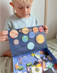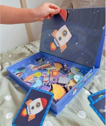 Setul de puzzle magnetic de la TOOKY TOY este o jucărie educativă fascinantă care ghidează copiii prin lumi spațiale infinite. Setul conține 12 modele spațiale diferite, fiecare împărțit în patru până la cinci piese de puzzle magnetice. Datorită etichetelor magnetice, copiii pot crea cu ușurință propriile scene spațiale pe tabla magnetică inclusă.