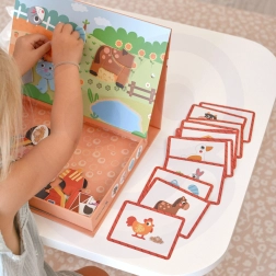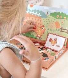Cu puzzle-ul magnetic de la Tooky Toy, copiii vor experimenta bucuria învățării prin joacă la fermă. Modelele și personajele alese, precum animale de hambar, fermier și măr ilustrează magia vieții fermierești. Fiecare proiect constă din patru până la cinci piese magnetice de puzzle, permițând copiilor să creeze propriile lor scene fermierești.