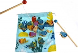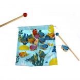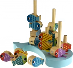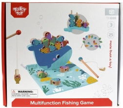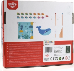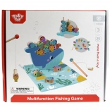 Joc din Lemn Tooky Toy Balena și Peștișorii Multifuncțional 4 în 1 este o versiune îmbunătățită a clasicului joc de pescuit magnetic, care oferă mai multe moduri de joacă.